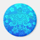 Ocean blue turtle design inspired by tribal Polynesian tattoos. Ocean blue background of blue Hawaiian Honu sea turtles and hibiscus flowers.