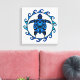 Ocean blue turtle design inspired by tribal Polynesian tattoos in the centre of a Maori Sun symbol.
