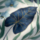 This elegant botanical design features flowing tropical leaves layered with soft blue flowers in a refined, nature-inspired composition. The artwork blends deep navy foliage with gentle sage greens and pale blue blooms, creating a calming yet sophisticated visual balance.