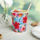 Blue Hawaiian Tropical paradise paper cups with Hibiscus Flowers. Cute Summer and Beach Vibes.