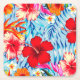 Blue Tropical hibiscus flowers Square Paper Coaster