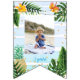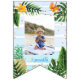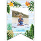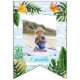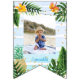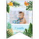 Bunting flags with your customised photos & designed in tropical style with tropical leaves, gold pineapple, yellow floral and blue background.