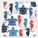 Blue Tropical Ocean Sea Turtle Seahorses Square Sticker