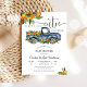 Celebrate in style with this charming baby shower invitation featuring a watercolor blue vintage truck overflowing with oranges and greenery. The playful phrase "Oh Boy! A Little Cutie Is On The Way- sets the tone for a joyful gathering. Perfect for honoring parents-to-be, this design blends rustic citrus flair with modern elegance. Customize with your event details to create a memorable keepsake that guests will love.