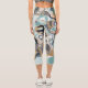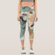Blue, Turquoise and Gold Swirled Marble Capri Leggings