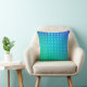 Cushion / Pillow featuring a funky retro pattern of squares in blue, turquiose and green.