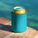 Can Cooler Koozie Sleeve with Blue Turquoise Frosted Glass Pattern Abstract Art illustration custom printed to order with original artwork design images by The Fabric Seal print on demand shop at Zazzle