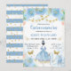A dreamy pastel‑blue and gold quinceañera invitation featuring a beautiful black haired ballerina in a soft blue tutu, surrounded by watercolor florals, butterflies, ballet shoes, and a graceful swan motif. String‑light accents and elegant mixed‑font typography highlight the celebration details, while delicate gold touches add a magical, feminine glow. The gentle pastel palette, whimsical illustrations, and graceful ballerina silhouette create an enchanting, youthful, and elegant invitation perfect for a ballet‑themed or princess‑style Quinceañera celebration.