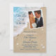 The cute saying, Two less Fish in the Sea accents this Photo Engagement Party Invitation on a background of aqua blue water, beach sand, seashells, starfish and sand dollars. The back of this invitation is further decorated with blue ocean waves and starfish. If additional coordinating items are needed, just contact us at prettyfancyinvites@gmail.com with your request. It is shown on the matte paper; however, the weight and texture of the white felt paper is my favourite choice for this invitation.
