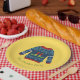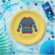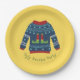 Have your party guest dine with this fun and enticing blue Ugly sweater elf feet paper plate. It features a blue ugly sweater with elf feet and a yellow background colour.