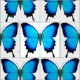 Original fine art pattern of exotic blue Ulysses swallowtail butterflies by nature artist Carolyn McFann of Two Purring Cats Studio printed on quality cotton fabric. Great for quilting and sewing projects for butterfly fans!