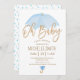 Watercolor Cute Rain Water Drops and Blue Umbrella Baby Shower Invitation for Boys.
