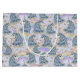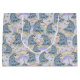 White unicorns with blue hair with rainbows and white flowers as a seamless repeat pattern design. The Unicorns are hand-drawn with coloured pencils. Traditional art.