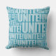 Blue UNITE! Typography Repeat Pattern Cushion