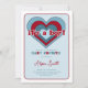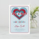 Adorable valentine themed baby shower invitation with red and blue hearts.