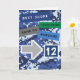 A blue video gamer 12th birthday card for boys. It features a pixel video game blue design on the front and back of the card. The inside reads a level up birthday card message which can be easily personalised if wanted. This blue gaming 12th birthday card would make great keepsake for son, nephew, grandson, etc.