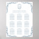 Dusty Blue Monogram Floral Vintage Crest Wedding 9 Table Seating Charts Poster. All the texts are pre-arranged for you to personalise easily and quickly with your own details.