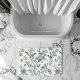 A detailed vintage floral illustration in blue tones, featuring delicately drawn branches, leaves, and blossoms on a light background, creating a classic and elegant botanical look. Toile-de-Jouy