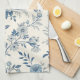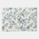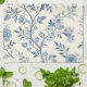 A detailed vintage floral illustration in blue tones, featuring delicately drawn branches, leaves, and blossoms on a light background, creating a classic and elegant botanical look. Toile-de-Jouy