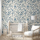 Blue Vintage Floral Pattern Wallpaper