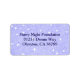 A custom address label with dark blue script letters on vintage blue etched stars on white.