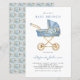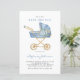 Invite guests to your event with this customisable baby brunch invitation. It features watercolor vintage stroller and blue flowers. This vintage baby brunch invitation is perfect for It's a Boy baby showers. Personalise by adding your details.