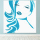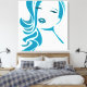 Lovely, retro girly theme in blue cyan and white colours. A beautiful, sensual woman face and neck. Fun, retro drawing.