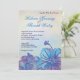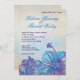 A beautiful floral watercolor wedding invitation with the colour palatte of blue and violet.The whimsical invitation is stained with water colour like brush strokes. The flowers are pretty, with one of the flowers having a long pistil like on a lily. Very classy, artistic and colourful.