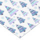 This Holiday table runner has a pattern of modern graphic Christmas trees. All of the trees are colour coordinated in tones of blue, teal, white, and violet. Little blue stars are scattered about in the pattern, which is placed on a white background