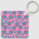 Blue Violet Pink Floral Pattern Key Ring