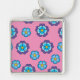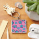 Blue Violet Pink Floral Pattern Key Ring