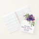Here's a pretty notebook that makes a nice bridal shower guestbook. The front has a stunning watercolor image of a wild rose bouquet in tones of blue, violet, pale pink, and green. The image is placed against a gold confetti background. At the bottom is your custom text in matching blue and violet. The back of the notebook has the same floral and confetti image without the text. This notebook matches the Blue Violet Wild Roses wedding line in our store.