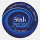 Abstract digital art with a blue spiral. Design on classic round sticker with text for a modern 50th Birthday Celebration. Matching Birthday Save the Date (postcard), squareflat cardinvitation, guest book (hard cover and spiral notebook), party supplies and more...