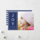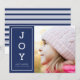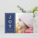 Send your friends and family "Warm Wishes" this Christmas/ Holiday season with this blue minimalist Holiday photo card that features the word "Joy" vertically. Card also includes a patterned back side.