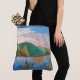 I painted this original abstract acrylic landscape on this cool tote bag, which I titled “Water Reflections,” to fill a gap on my wall. I used acrylics on a very thick lining paper to create the block colours, I then outlined the shapes with gold paint. The water scene comes from my imagination but is based on the places I’d been to around Epping forest London England, there’s some lovely lakes among the forest land. The picture is in vibrant colours to express a warm day by the water side. The title of the painting is “Water Reflections.”