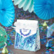 Blue watercolor art thank you gift box. Ideal for wedding favours and attendants gifts. Watercolor art abstract art and wreath design. Part of the blue aqua abstract wreath wedding set. Watercolor art and design by Sarah Trett. www.sarahtrett.com for www.mylittleedenweddings.com