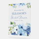 Welcome guests in style with this blue watercolor floral bridal shower acrylic welcome sign. Soft hand-painted blooms frame the design, printed directly onto clear acrylic for a modern, elevated look. Personalize with the guest of honor’s name and event date to create a polished entrance display. Ideal for easels, entry tables, or reception welcome areas.