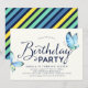 Invite family and friends to a birthday celebration with this Birthday Party Invitation featuring blue watercolor butterflies against an off white background on the front. Invitation has a colourful stripes pattern against a dark blue background back side. Check out other birthday items here https://www.zazzle.com/rosewoodandcitrus/gifts?cg=196514072126829696&rf=238364477188679314