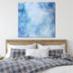 This beautiful artwork features an image of a watercolor (or, in British English, watercolour) painting. There is a simple blue wash across the canvas that gives it an elegant and relaxing effect. It is perhaps evocative of a beautiful sky flecked with white clouds. You will be proud to display this stunning piece of art in your home.