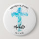 Blue Watercolor Christian Cross Baptism 10 Cm Round Badge