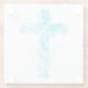 Blue Watercolor Christian Cross Baptism Glass Coaster
