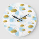 Blue Watercolor Clouds Gold Stars Sky Large Clock