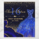 Blue Watercolor Dress & glitter agate Sweet 16 Wine Label