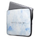 Elegant laptop sleeve with your name over a hand painted blue watercolor background.
