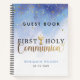 Modern elegant First Holy Communion guest book. Design featuring watercolor background and gold confetti, first holy communion script in trendy lettering. Personalise with a name and date.