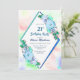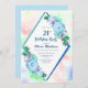 A watercolor blue watercolor floral diamond geometric frame 21st birthday party invitation.