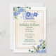 Blue Watercolor Floral Leaves Baby Shower Invitation