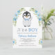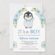 Blue Watercolor Floral Penguin Baby Shower Invitation