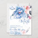Blue Watercolor Floral Script Wedding Magnetic Invitation