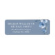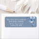 Blue watercolor floral wedding label with full names as an addition to the casual first names only wedding invitation.